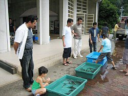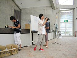 鮎のつかみ取りは増水のため残念ながら川原では出来ませんでしたが子供さんたちが元気いっぱい鮎を追いかけていました。